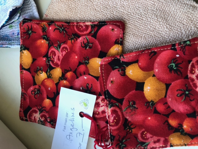 2 trios de lavettes démaquillantes en tissus coton/éponge de récupération.